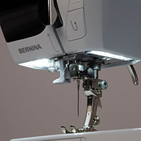 Med BERNINA 330’s lyse LED-sylampe kan du opnå præcise resultater, selvom det omgivende lys ikke er så godt, og du har altid et godt overblik over dit sy- arbejde. Særligt ved længerevarende syning er en LED-lampe en uundværlig detalje, som gør, at du kan sy i lang tid uden at blive træt. Sådan scorer BERNINA 330 også points for en ergonomisk fordel – fint syarbejde kan holdes perfekt under kontrol, og øjnene bliver skånet, takket være en ensartet oplysning af arbejds- området, som ikke blænder. LED-sylampens neutrale lyskarakteristik sørger desuden for, at du allerede kan vudere den anvendte tråds farvevirkning under syningen, helt uden mis- farvninger forårsaget af eksterne lyskilder med farveskær, som for eksempel neonrør eller glødelamper. En lille detalje med stor virkning.