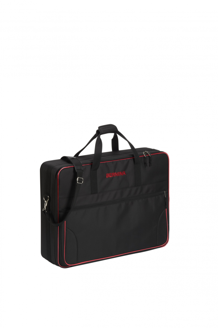 Taske til broderi-modul. XL modellen passer til 7 og 8-serie moduler. Kan fastgøres med strop på teleskophåndtag af transportkuffert. Stor åbning der giver let adgang med broderimodul. 360° stød-dæmpning. Tilpasnings stykker og strop til den indvendige foring der sikrer at broderimodulet står helt fast. Behagelig skulderstrop, der kan justeres i størrelse og afmonteres. Indvendige lommer til broderi tilbehør og broderirammer. Kraftige lynlåse der er lette at få fat i.
