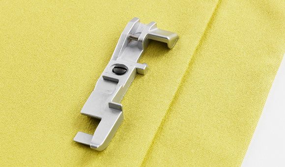 Denne trykfod benyttes til påsyning af strikvarer og til oplægning, hvor sømmen ikke skal være synlig.