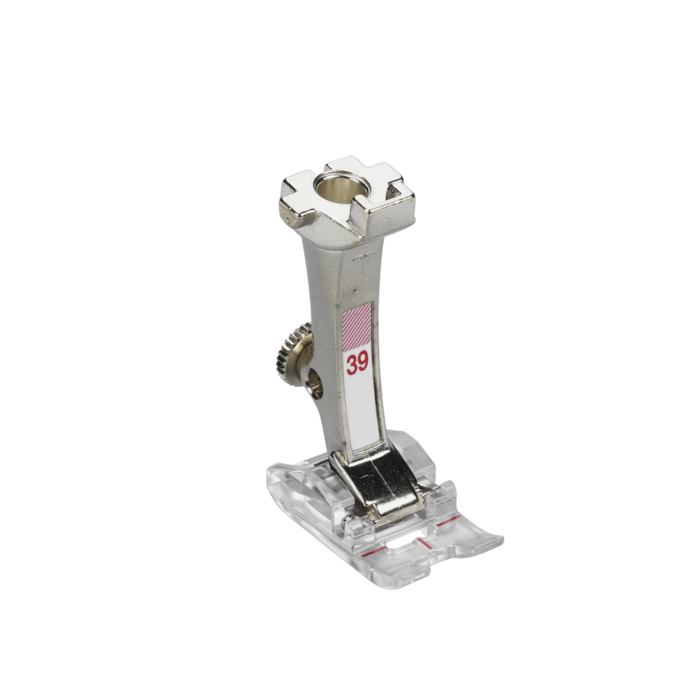 Broderifoden med klar sål # 39 er en alsidig model. Trykfoden er fremragende til kompakte pyntesting, satinsting og applikationer samt syning af lufthulller. Det lille hul midt på foden er endnu en fordel. Den anvendes til oversyning med følgetråd, som føres direkte under nålen. Dekorationsprojekter med reliefeffekter udføres også nemt med broderifoden # 39. Broderifoden # 39 er efterfølgeren til den velkendte broderifod # 6 og giver pga. den gennemsigtige fod altid et godt overblik over broderiområdet.