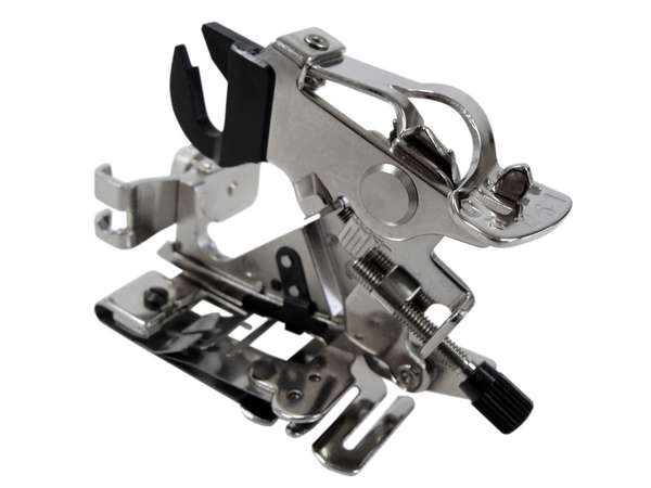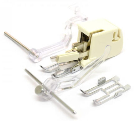 Rynker, laver folder og syr fast i et eneste moment. Tre indstillinger for at rynke i hver, hvert 6. eller hvert 12. sting.