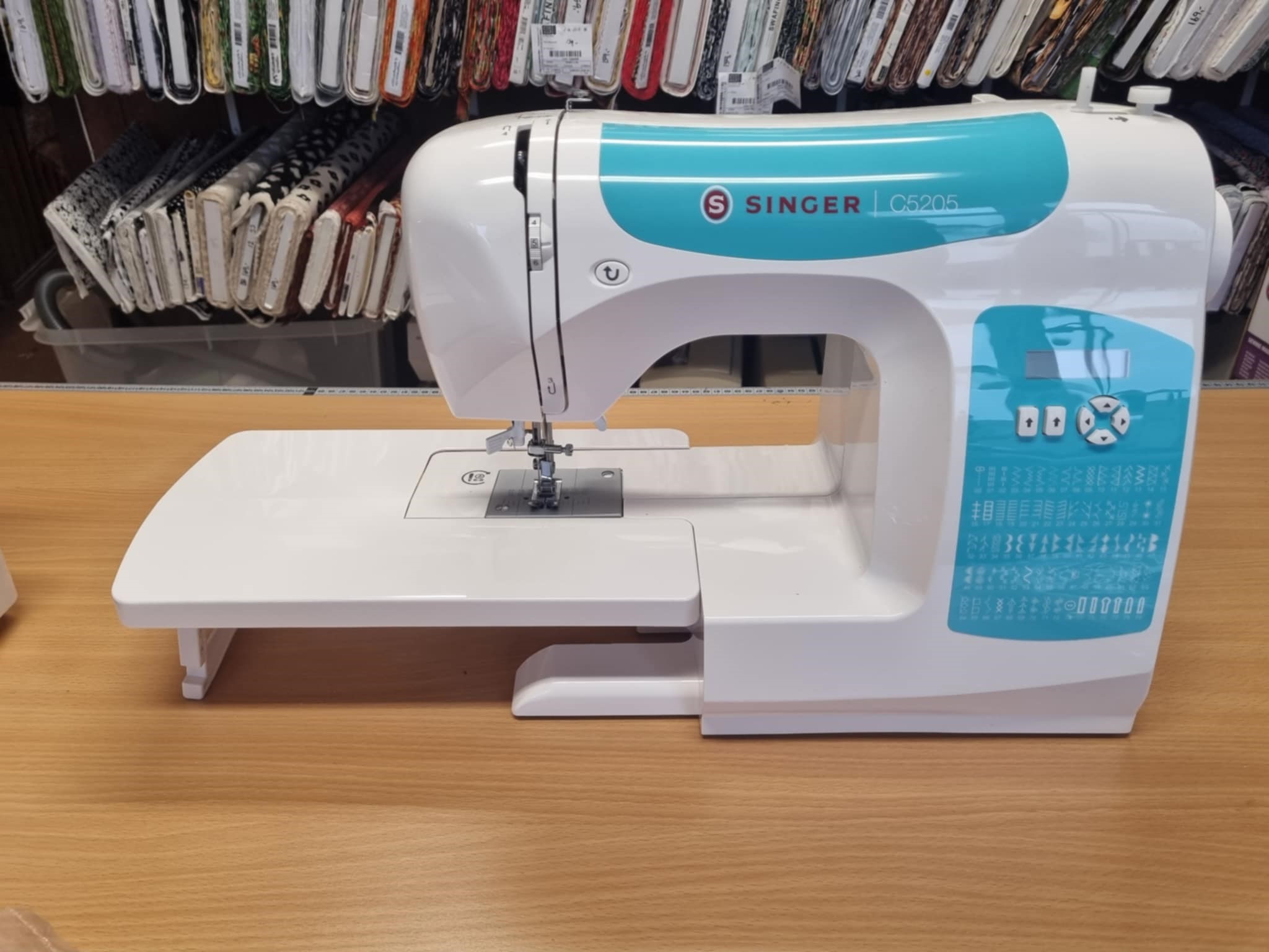 Maskinen leveres med forlængerbord. og trykfødder til knaphuller, lynlås, stræksømme og standart foden.