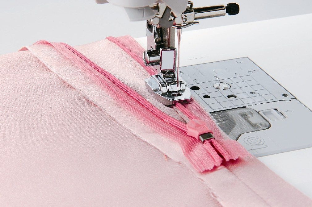 Denne fod anvendes til at sy en usynlig lynlås i.